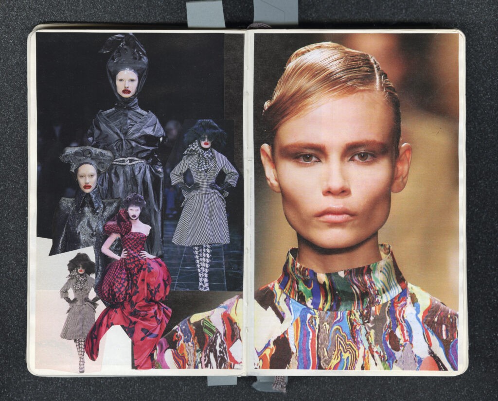 Around 2003, stylist David Vandewal began creating pocket-size books featuring collages of Peter Philips’ recent make-up work and his research and inspirations. Left: Alexander McQueen Autumn-Winter 2009-2010, right: Dries Van Noten Autumn-Winter 2008-2009
