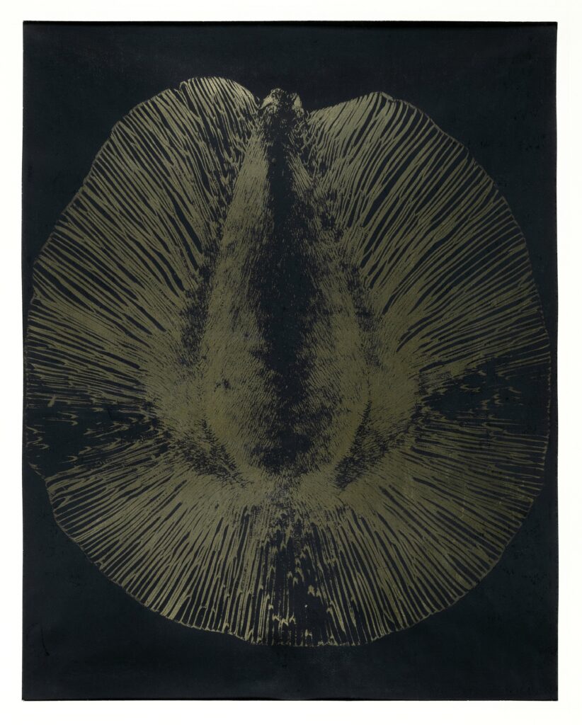 Dans la section « Matière végétale » il s’agit de rapprocher les phénomènes de photosynthèse et du processus chimique du médium photographique avec des représentants comme la célèbre pionnière botaniste et photographe Anna Atkins qui utilise de nombreux végétaux comme des algues séchées et la technique du cyanotype. Le naturaliste britannique Henry Bradbyury améliore les techniques d’impression végétale avec la galvanoplastie, dépôt par électrolyse d’une couche de cuivre. Autre figure majeure le cinéaste expérimental Stan Brakhage qui utilise des feuilles et éléments naturels qu’il glisse entre deux films créant des images sans caméra.
