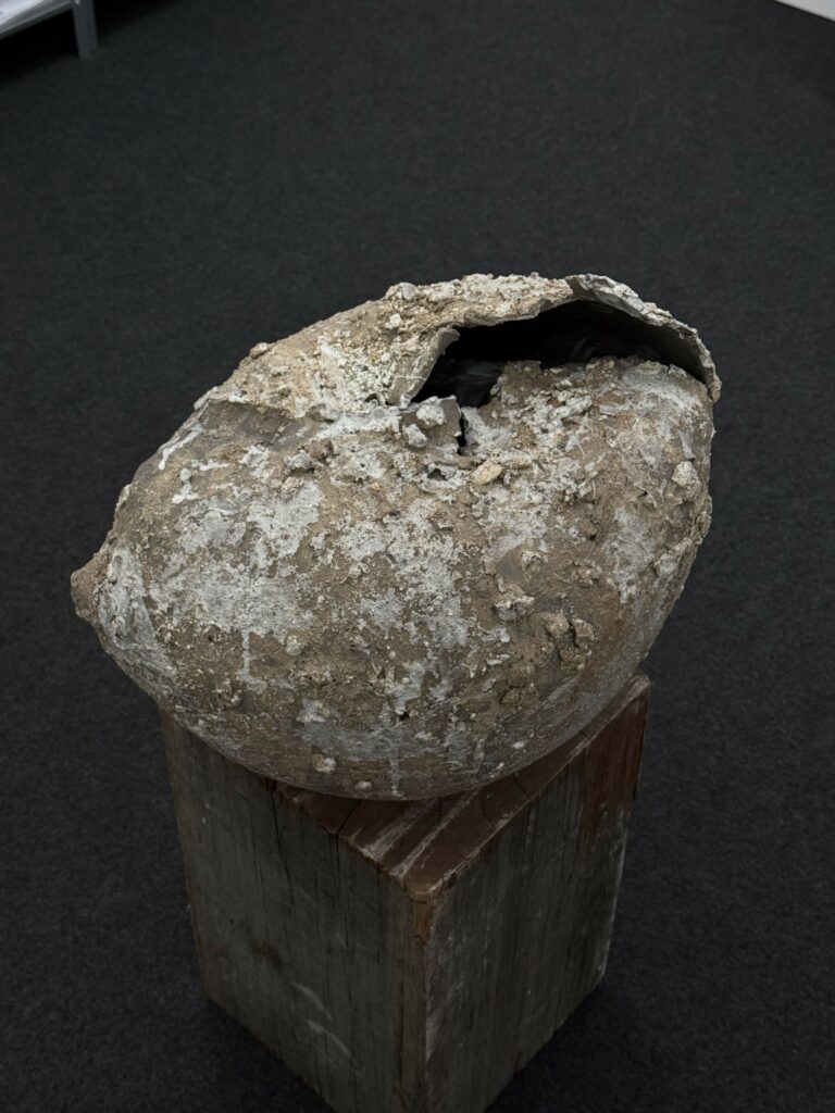 Je souhaitais montrer le côté brut et authentique de la galerie. Comme c’est ma première édition je voulais exposer un large panel de mes artistes et voir quel(s) artiste(s) allaient attirer le public. Ma sélection est volontairement cohérente. Les céramiques sont sur des socles en bois, ce qui fait partie de la ligne de la galerie volontiers brute.