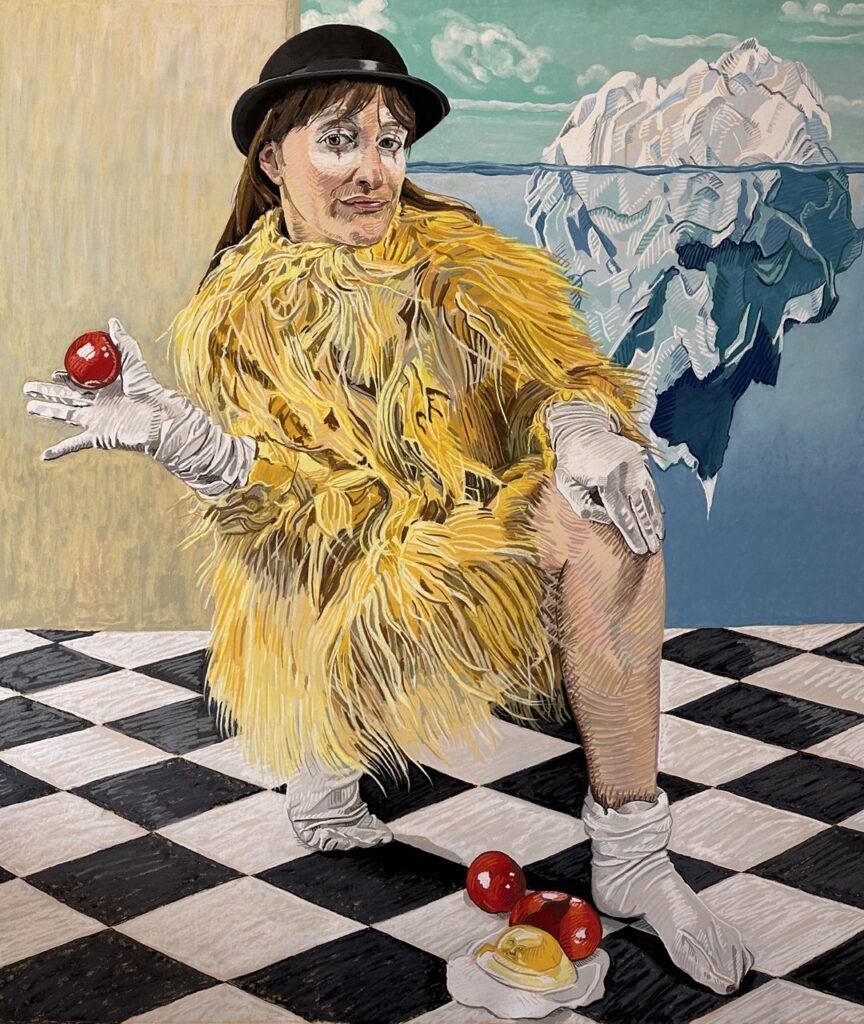 After her acclaimed solo exhibition Hardcore / Softspore at TATJANA PIETERS in the summer of 2024, Cop once again presents colourful, large-scale works that reflect a resolutely new perspective on the artist and their role in society. The title of the new series, The Fool in the House, is a reference to Coventry Patmore’s 1854 poem The Angel in the House, and the essay of the same name by Virginia Woolf, who anticipated the destructive critique of the idealization of the obedient and subordinate woman. In the works, Cop questions the role of the artist as both entertainer and critic. The fool is often a figure on the margins of society, thus enjoying a unique privilege of delivering criticism to those in power. Cop asks how the contemporary artist can take up this position in a polarized world in times of climate crisis and war.