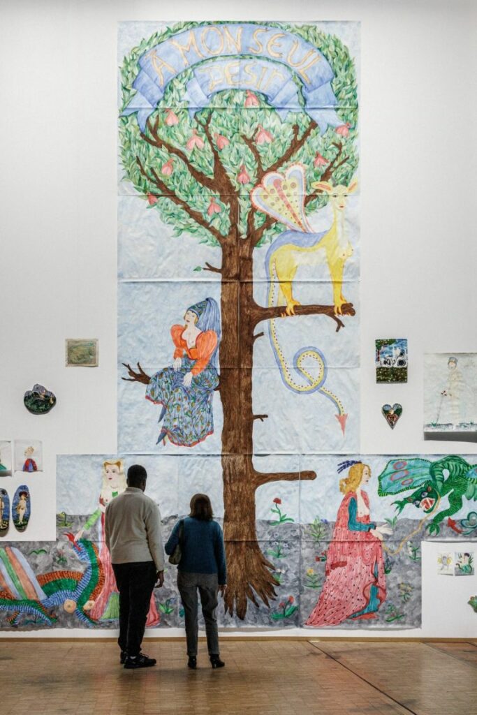 HF. C’est un concept directement emprunté à Monique Wittig, autrice militante lesbienne féministe. Je me réfère souvent à une imagerie médiévale et souvent enfantine, naïve, des formes longtemps méprisées dont on ne se méfie pas. Cela me permet ainsi d’introduire d’autres sujets plus politiques. Des esthétiques qui offrent une certaine accessibilité, ce qui est essentiel si l’on veut adopter une approche politique. Souvent en art contemporain il y a des formes qui sont oppressives et que je parviens difficilement à comprendre alors que j’ai fait des études d’art. Des installations très épurées souvent dans des white cube. Je propose des œuvres qui essaient de court-circuiter ces formes de représentation de l’art contemporain.