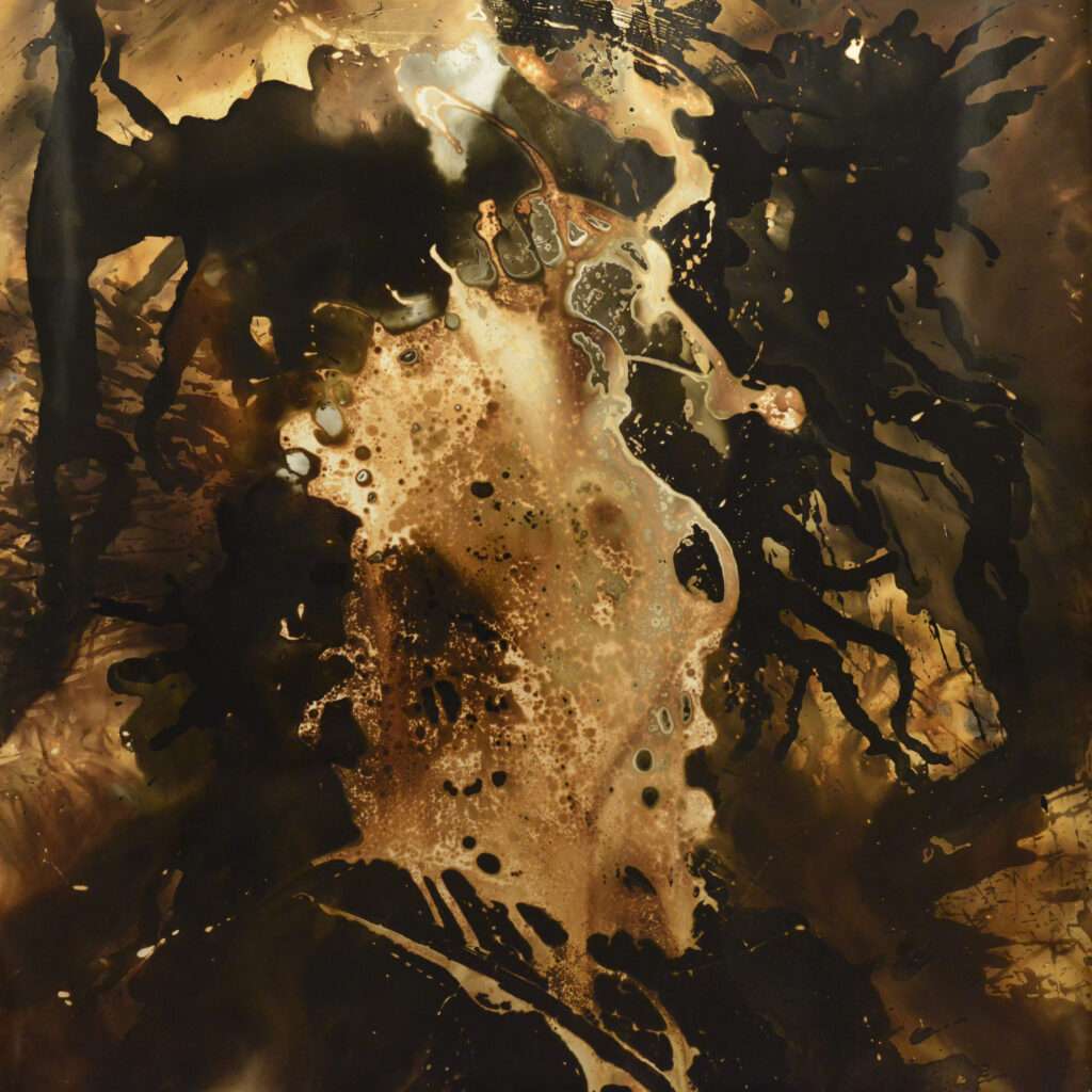 Ma pratique s’articule autour de la recherche d’une organicité photosensible, que je travaille comme une matière vivante. Le principe de photosensibilité est à l’origine de la vie sur terre, c’est une faculté donnée à nombre d’organismes vivants leur permettant de transformer l’énergie solaire en énergie chimique. C’est ce mouvement vibratoire électromagnétique et chimique invisible qui est à la source de la production de l’oxygène que l’on respire, les feuilles des végétaux ou certaines bactéries étant les sièges de sa transformation. J’ai donc choisi de composer en plaçant ce principe vital et actif au cœur de ma pratique, le papier photographique argentique agissant comme la membrane d’une peau, façonnée par le soleil. Mes chimigrammes sont en quelque sorte des sculptures planes de lumière et de chimie. J’assume complètement la part d’aléatoire que ce processus comporte, à l’intérieur duquel mes gestes accompagnent, retiennent, amplifient des forces autonomes. Lorsque je suis sortie du dispositif optique de la photographie, c’est je crois dans un souci de trouver un geste créatif de vitalité, capable de rendre compte des logiques symbiotiques et d’interdépendance où rien sur terre n’est et ne peut se considérer comme figé ni séparé.