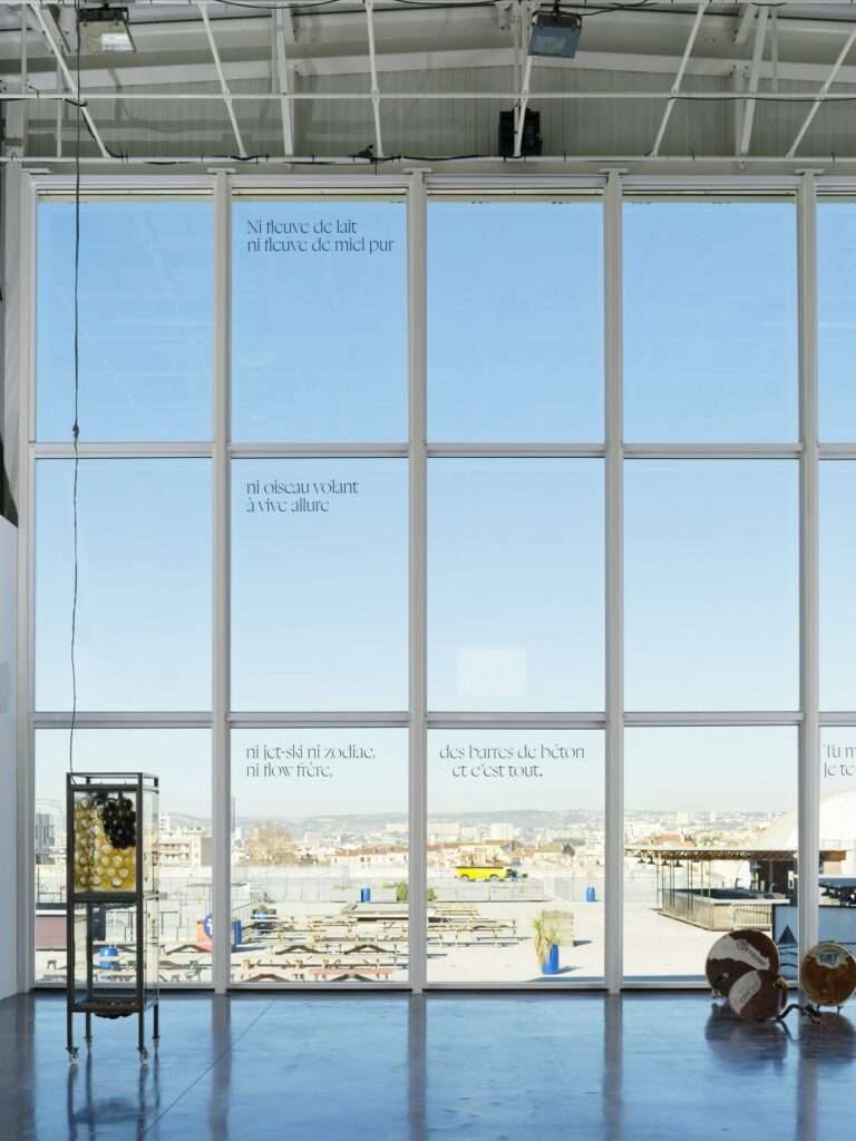 Victorine Grataloup. C’est une exposition particulière dans la mesure où pour le Panorama nous proposons plutôt des expositions personnelles alors que cette exposition est à la fois collective et pensée autour d’une personne. Son titre assez poétique « Comme un printemps je serai nombreuse » est une citation d’un texte de Sonia Chiambretto, poétesse et metteuse en scène basée à Marseille. Figure importante pour la scène locale elle a été mise en scène pour la première fois par Hubert Colas, à l’initiative du festival Actoral. Avec Sonia, nous nous sommes rencontrées en 2023 à l’époque où nous avions produit une performance de Samir Laghouati-Rashwan dans le cadre de « Parallèle ». Cette rencontre a été très forte et s’est poursuivie par des échanges autour de son envie d’une forme collective car elle a cette particularité d’être très entourée de jeunes artistes, plasticien.nes. Elle m’a proposé à l’été 2023 d’imaginer ensemble ce qu’elle appelait une carte blanche pour progressivement venir à cette idée d’exposition collective qui n’a lieu qu’en 2025 puisque nous tenions à cette date de commémoration des 20 ans des émeutes urbaines de 2005, l’un des sujets de recherche de Sonia. Elle compose une forme de poésie que je qualifierais de documentaire à partir de recueils de paroles directes et notamment des jeunesses des quartiers populaires, sujet qui a un vrai écho dans le contexte de la Belle de Mai et plus généralement des quartiers nord. Sonia à partir d’ateliers, travaille sur les questions de racisme structurel, de ségrégation socio-spatiale et de ce rapport à ces quartiers populaires.