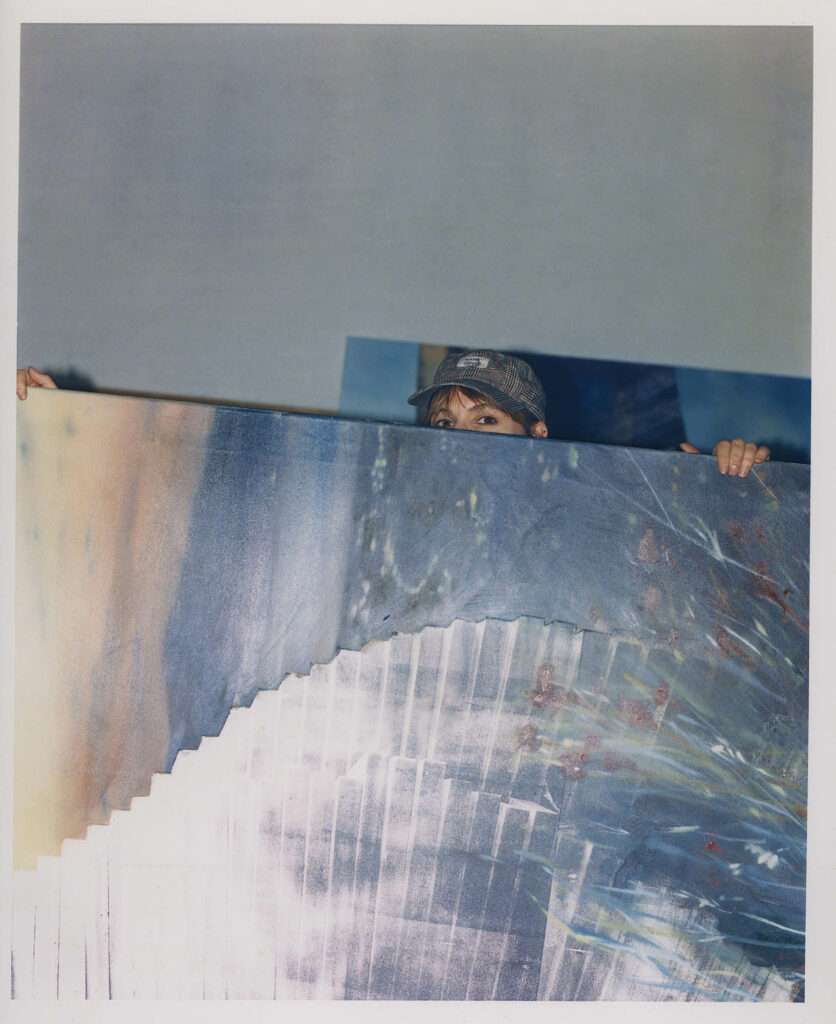 Vertige, sidération, retournement, telles sont les impressions ressenties devant la réponse donnée par l’artiste Eva Nielsen à l’invitation de Joël Riff pour sa première exposition personnelle en Belgique, à La Verrière, espace dont elle démultiplie les potentiels entre persistance rétinienne et rigueur conceptuelle. Son triptyque d’une taille inédite s’impose et se dérobe à toute emprise de cadrage. Pour ce « solo show augmenté » selon la formule déployée par le commissaire, Eva Nielsen est entourée très justement d’une sculpture de l’artiste minimaliste radicale allemande Charlotte Posenenske, du mobilier du designer belge Arnaud Eubelen, tandis qu’un texte a été commandé à Annabelle Blin (agence Établissement Paysage). Eva Nielsen qui a été exposée aux dernières Rencontres d’Arles et à la Biennale de Lyon (2022) poursuit son exploration du trouble et du surgissement de l’image à partir de sédimentations et de trames successives offertes par la photographie combinée à la sérigraphie. Son dialogue ininterrompu avec Joël Riff se cristallise autour d’une dialectique entre séquence mécanique et gestuelle du peintre dont elle nous décrypte les ressorts. De plus l’artiste participe à l’exposition collective « Dans le flou » qui ouvre au musée de l’Orangerie, rejouant cette part irrésolue de la peinture qui la fascine. Elle a répondu à mes questions.