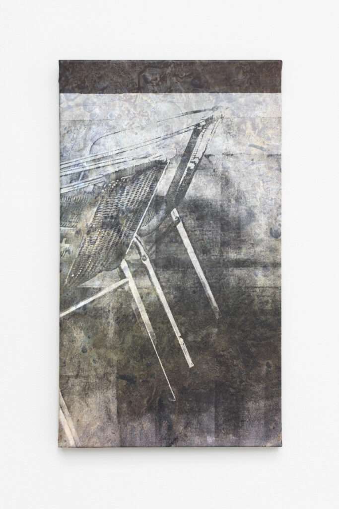 EN. Le mot est juste en effet relevant de ce questionnement dès le départ aux Beaux-arts autour d’une possible discussion entre cette pratique de la peinture et de la photographie, argentique notamment. J’étais obsédée en photographie argentique par les révélations successives qu’elle permet. En poursuivant ce fil, est apparue cette problématique de comment on retranscrit, la photographie étant calquée sur notre œil ne l’oublions pas, pour en arriver rapidement à la sérigraphie, c’est-à-dire toutes les méthodes d’impression. C’est par la sérigraphie que j’ai pu établir le pont avec la peinture. Pour rappeler le processus : je travaille par écrans qui sont nombreux en l’occurrence étant donné le format spécial de ces grandes peintres, ce que l’on n’imagine sans doute pas au premier regard. Il y a une trentaine d’écrans par peintures d’une dimension de 90×70 cm pour être précise. Un puzzle se forme dès lors dans l’atelier à partir de chaque fragment d’image photographique imprimé manuellement, ce qui créé aussi un « time lapse », selon la façon dont j’enduis différemment chaque fragment. Cela induit également une dimension lacunaire très présente. Une fois que j’ai terminé la sérigraphie il y a tout un long processus où je viens la recouvrir pour garder ce côté surexposition et rétine cramée. C’est à la fin que réapparaissent les interstices de la sérigraphie. Cela créé une contreforme intéressante avec le réflexe de notre œil qui cherche à voir la sérigraphie sur la peinture.