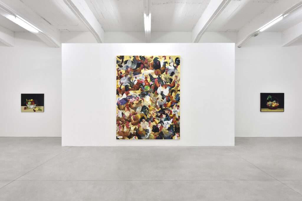 SK & FG. C’est également un projet soutenu par M Art Foundation. C’est un artiste chinois que nous avons découvert à l’occasion de l’exposition collective du Centre Pompidou de la jeune scène chinoise. Même s’il est formé à l’Académie du film de Pékin, nous avons sélectionné principalement des peintures de natures mortes. L’artiste n’a pas fait d’étude à l’étranger. Au-delà d’un aspect décoratif, l’univers nous semblait intéressant. C’est une peinture très figurative même si nous le soupçonnions d’être plus malin et inventif. Cela s’est vérifié car s’il connait très bien l’histoire de l’art et vient du manga, qu’il collectionne, de même que Korarkrit. Ses références sont donc très codées à la fois dans le symbolisme chinois mais aussi dans les références à la nature morte hollandaise et flamande.