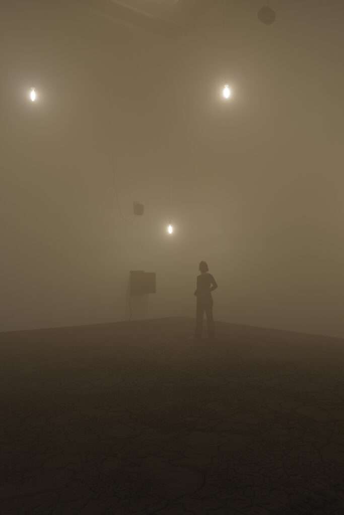 C’est pourquoi quand vous vous déplacez à l’intérieur de l’œuvre le son vous entoure mais il n’est pas digital. C’est un processus spécial comme une capsule, un sonar. Cela dépasse l’expérience qui est devenue quelque chose de galvaudé. Chaque fois que la lumière s’arrête, c’est comme un fantôme de Godard.