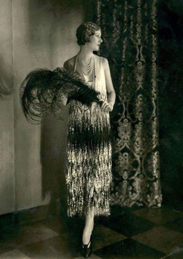 Edward Steichen, Ina Claire portant une robe sans manche à décolleté profond en V brodé de perles et de paillettes argentées, conçue par Chanel. Vogue américain, 15 octobre 1924 © Condé Nast