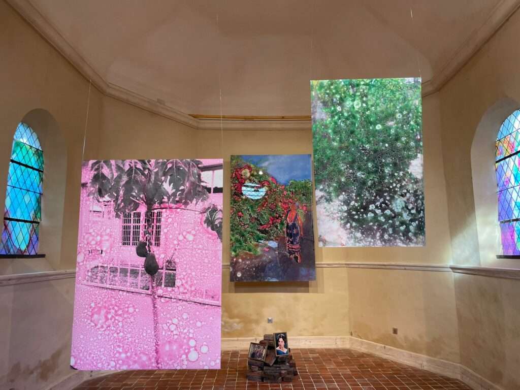 Quand Fred et Emmanuelle m’ont proposé cette chapelle, j’ai eu l’idée d’une installation immersive qui va vous plonger dans toute une colorimétrie assez particulière, tropicale, des images qui sont en train de se détruire. Toute une colorimétrie qui m’est très chère et que, depuis 2015, je ne peux plus voir. Une évocation autour de cette question de comment le souvenir, la mémoire, se transforme quand on est en exil et quand on sent qu’on commence à oublier le pays d’origine.