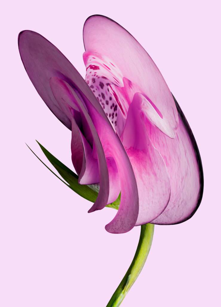 Dans l’aile ouest du château, le travail de Vincent Fournier s’impose par sa position à la croisée de l’art et de la science. L’artiste collabore étroitement avec des chercheurs du Muséum national d’Histoire naturelle, notamment le botaniste Marc Jeanson, ainsi qu’avec Jean-Sébastien Steyer, scientifique et auteur de science-fiction. Ensemble, ils élaborent un récit spéculatif dans lequel des fleurs seraient transposées sur une autre planète et soumises à de multiples transformations. Une œuvre hybride, mêlant rigueur scientifique et imagination, qui interroge les possibles évolutions du vivant.