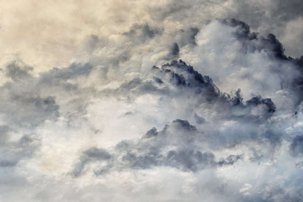 La superposition des nuages d’un côté et du végétal de l’autre donne naissance à des images oscillant entre impressionnisme et surréalisme. Ces œuvres cherchent à rendre perceptible la complexité infinie du réel et de la nature, en perpétuelle évolution. Vibrations, mouvements, feuillages, fleurs ou formations nuageuses deviennent les vecteurs d’une composition visuelle qui suggère, par accumulation et transparence, la vibration même de la vie.