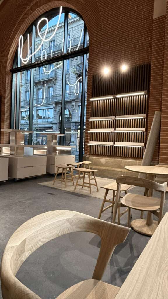 MdF. La boutique est à la fois très contemporaine et très ancrée dans le patrimoine avec cette grande statue « Le Génie de Toulouse » du sculpteur toulousain Carlo Sarrabezolles : un signal ?