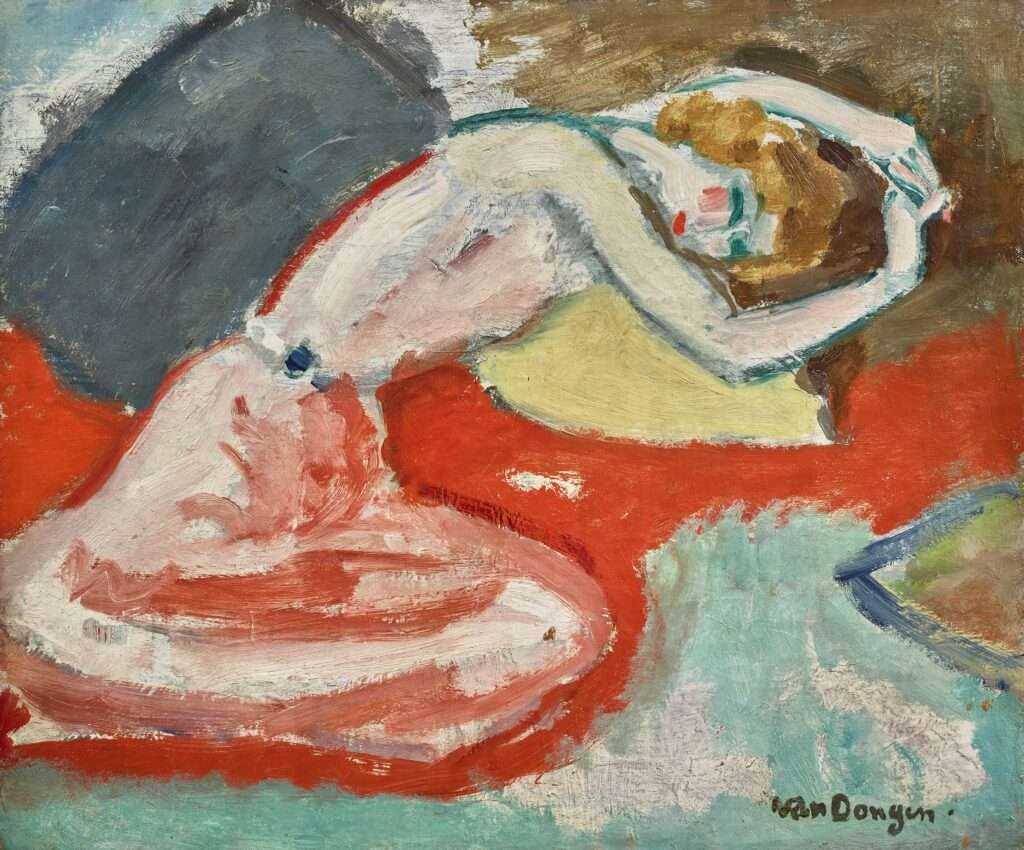 Kees van Dongen La Chemise ou Femme penchée sur un coussin jaune, 1905 Huile sur toile